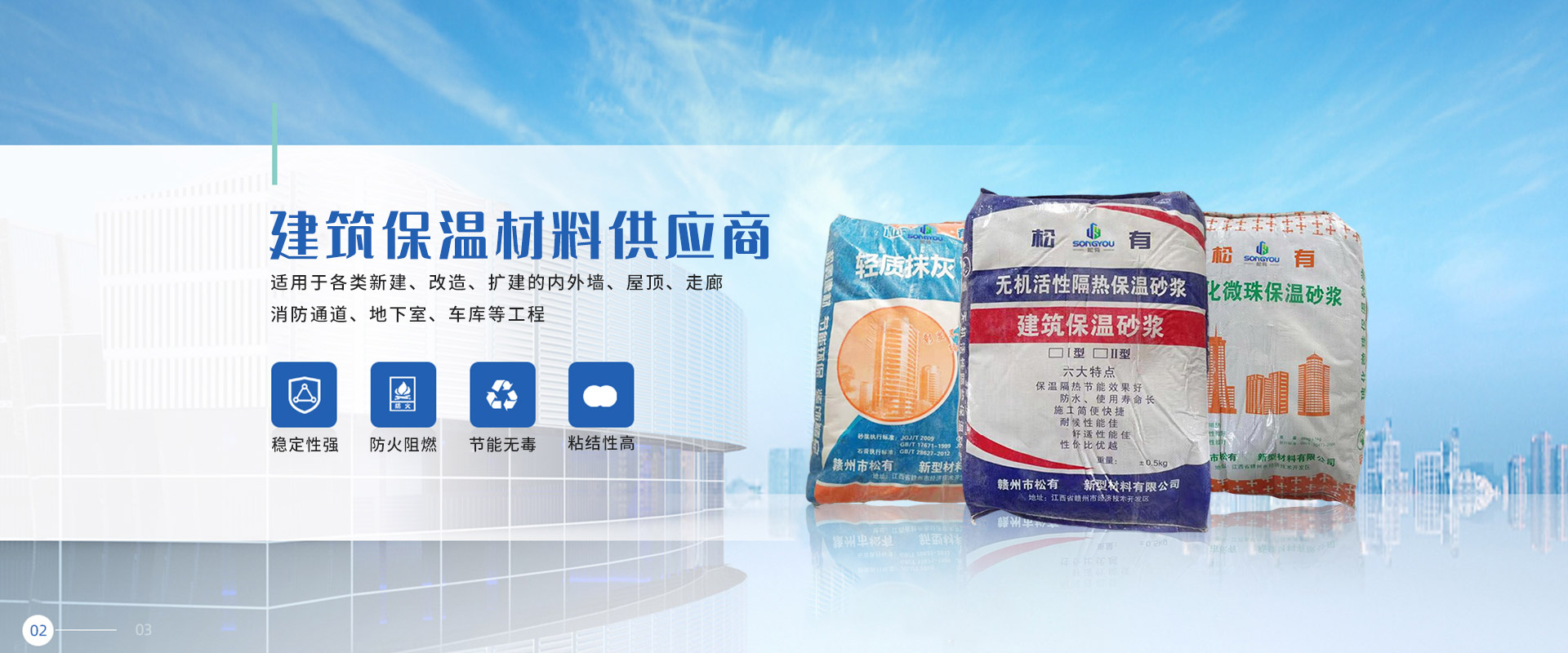 江西松有新型材料有限公司,主要從事保溫材料、防水材料銷售,兼營(yíng)建筑材料、裝飾材料和金屬材料等銷售,主要產(chǎn)品有巖晶砂、高分子益膠泥、輕質(zhì)抹灰砂漿石膏、防滲抗裂砂漿、?;⒅楸厣皾{、砌塊砌筑粘接劑、無(wú)機(jī)活性隔熱保溫砂漿、加氣磚專用砌筑砂漿等。